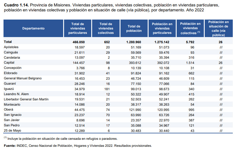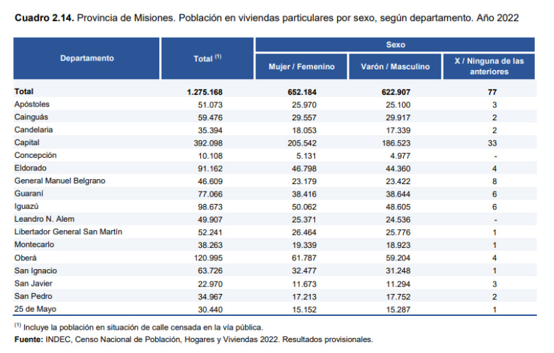 Censo 2022: la población misionera aumentó casi un 16% en 12 años