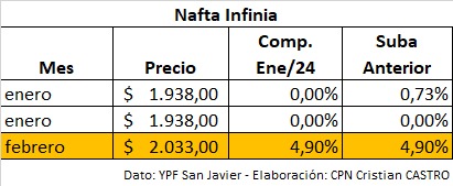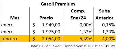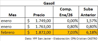 Análisis económico – Incremento de combustibles YPF San Javier (Misiones) – Febrero 2026