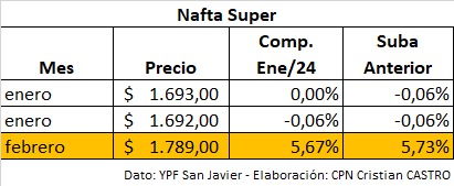 Nafta Súper 1.692 1.789 +5,73%