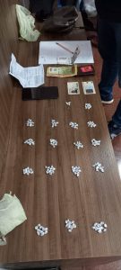 Durante el procedimiento, uno de los detenidos intentó descartar una riñonera con 164 envoltorios de aluminio que contenían una sustancia cerosa, junto con dinero en efectivo. El narcotest confirmó que se trataba de clorhidrato de cocaína en piedra (conocida como pedra), con un valor estimado superior a $440.000.