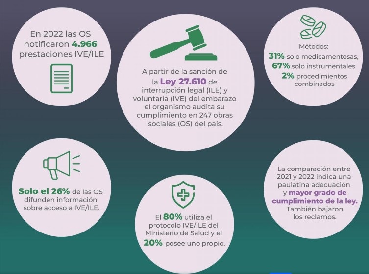 Las obras sociales de Argentina notificaron este año 4.966 prestaciones relacionadas con el acceso a interrupciones legales (ILE) y voluntarias (IVE) del embarazo, las que a dos años de la implementación de la ley de aborto legal muestra mayores adecuaciones en sus servicios para cumplir con la norma, si bien falta que brinden mejor información sobre el acceso al derecho.