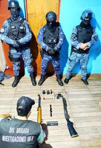 El primer procedimiento se realizó en el barrio Villa Tacuara, donde se secuestraron un arma de aire comprimido, una escopeta tipo itaka y equipos de comunicación.