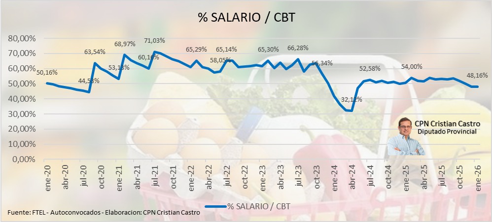 El salario vuelve a cubrir alrededor del 50–53 % de la CBT.
