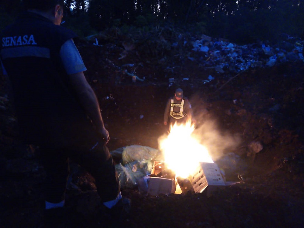 Anoticiado de los hechos, el Juzgado Federal de Eldorado dispuso la intervención de personal del Servicio Nacional de Sanidad y Calidad Agroalimentaria (SeNaSA), que procedió a desnaturalizar la mercadería secuestrada y quemar la totalidad del cargamento.