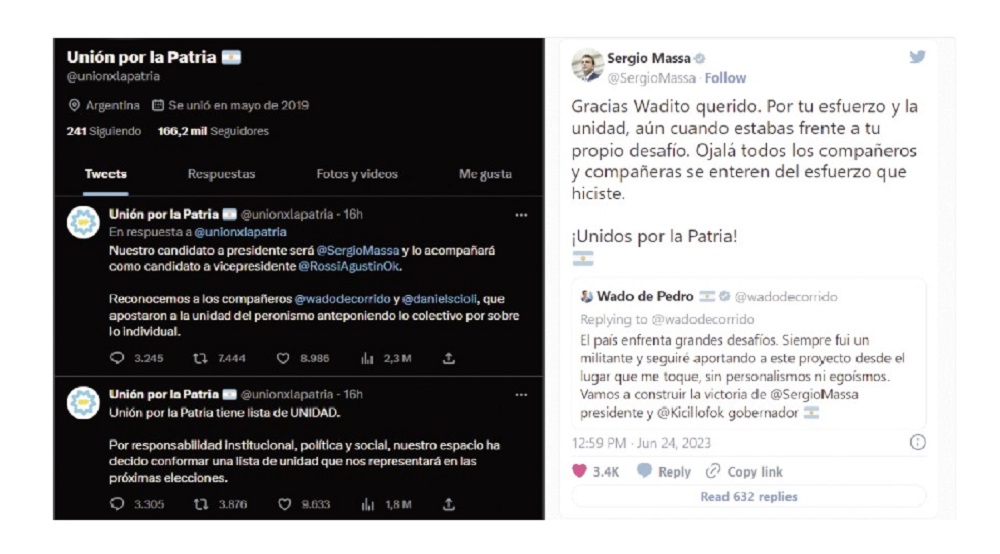El nuevo anuncio oficial de la fórmula presidencial de Unión por la Patria (UxP) conformada por el ministro de Economía, Sergio Massa, como candidato a presidente de la Nación, y del jefe de Gabinete, Agustín Rossi, provocó una especie de cisma político tanto en el oficialismo como en la oposición.