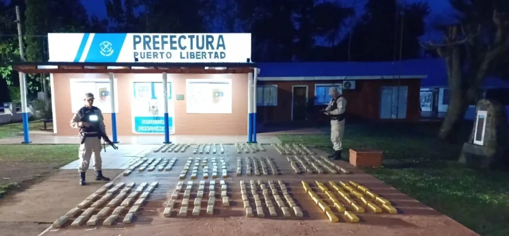 La Prefectura Naval Argentina decomisó más de 335 kilos de estupefacientes en Puerto Libertad, en el marco del Operativo de Frontera Alto Paraná. La carga, valuada en $1.216 millones, fue detectada en una zona estratégica del río Paraná y representa uno de los golpes más importantes del año contra las organizaciones criminales que operan en la frontera misionera.