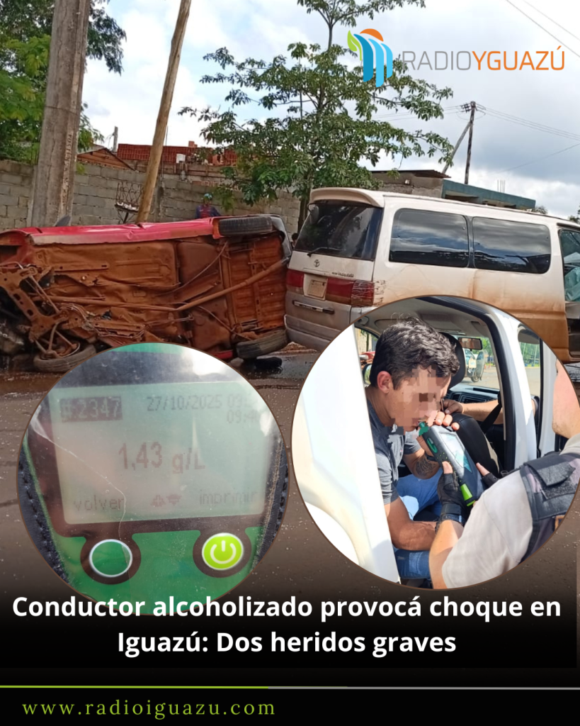 En el lugar, personal policial constató la colisión entre un Toyota Regius, patente paraguaya , conducido por César Adrián B. (27) —quien presentaba aliento etílico—, y un Peugeot 205 al mando de David V., que viajaba acompañado por Gladys G.