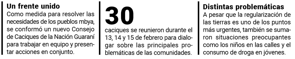 Desde fines del año pasado se registraron situaciones preocupantes que involucraron a personas pertenecientes a comunidades mbya guaraní. Más allá de las denuncias hechas por los pueblos por conflictos con el uso de las tierras, se sumaron intervenciones para cuidar a los niños indígenas que recorren calles pidiendo dinero o vendiendo productos. Además, aumentan las situaciones de violencia y el consumo de drogas en jóvenes guaraníes. Todo esto lo dialogaron durante tres días en un encuentro entre caciques en la zona de Cuña Pirú en Aristóbulo del Valle.